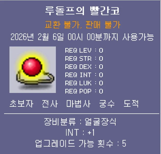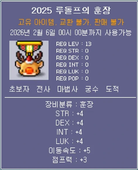 STR/DEX/INT/LUK/공격력/마력 버전이 있으며 2월 6일까지 사용 가능.