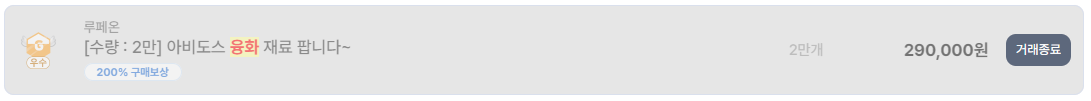 2. 아비도스 융화재료 시세 안정적인 현금화 아이템