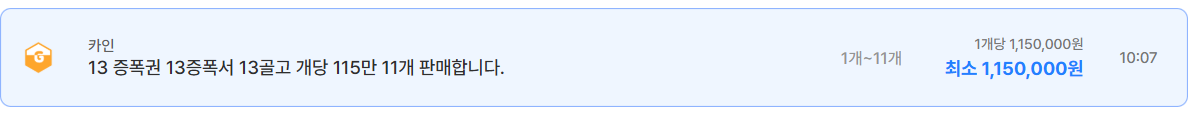 증폭 관련 아이템은 고자본 유저 중심의 거래 흐름을 잘 보여준다. 13 증폭권, 일명 13증폭서의 경우 카인 서버에서 개당 115만원에 최대 11개까지 일괄 판매 매물이 등록되어 있다. 단기간에 고스펙을 완성하려는 유저들이 직접 강화 리스크를 감수하기보다는, 확정 수단을 선택하는 경향이 강해졌다는 것을 보여준다. 시즌 후반으로 갈수록 이런 고가 아이템의 거래 빈도는 더욱 높아지는 편이다.